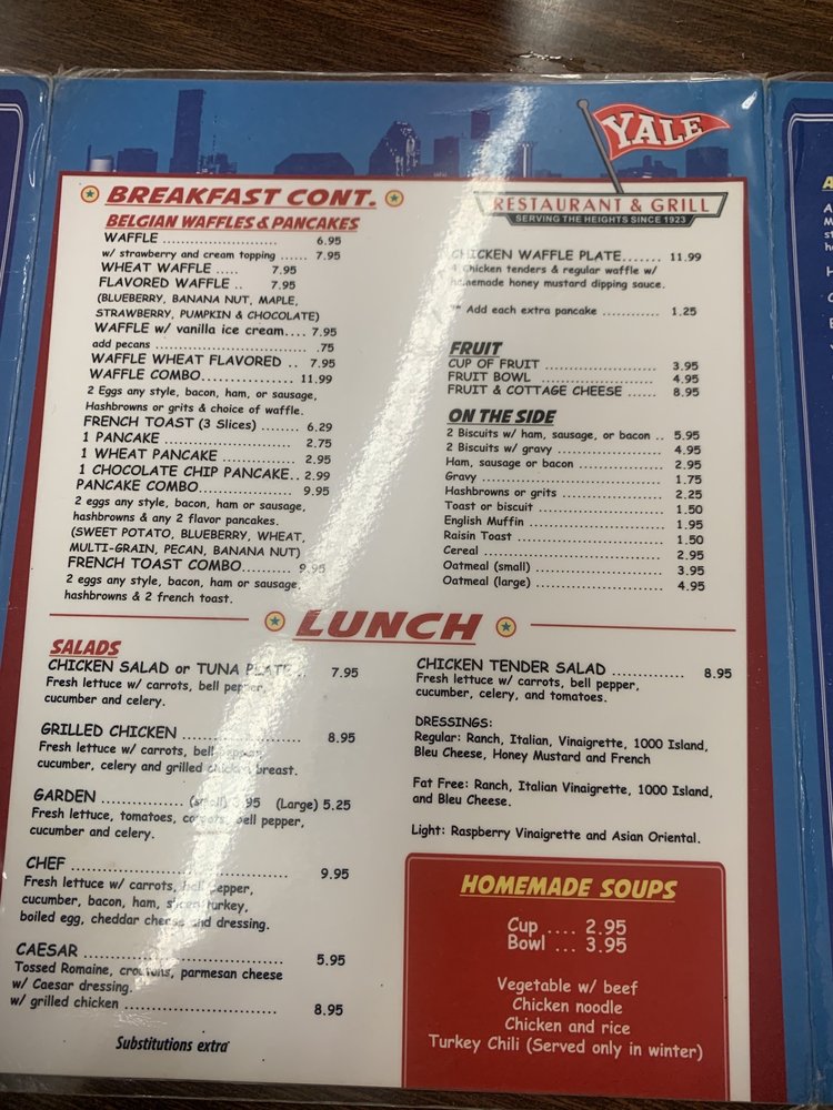 Yale Street Grill & Gifts, a charming American diner located at 2100 Yale St in Houston, TX, offers a cozy atmosphere with a variety of options for both breakfast and lunch. The menu features classic diner favorites like omelettes, pancakes, and hashbrowns, all served with a touch of old-school charm. Customers praise the friendly wait staff who keep your coffee hot and the affordable prices that make it a favorite breakfast spot. While some reviewers noted longer wait times for orders, the delicious food and unique diner aesthetics make it worth the visit. With options for vegetarians and a side antique shop to browse, Yale Street Grill & Gifts is a delightful destination for a comforting meal in a nostalgic setting.
