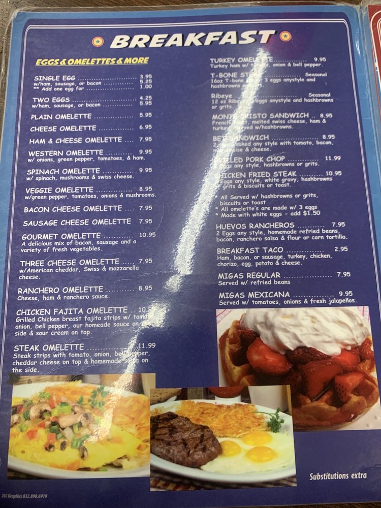 oz t-bone steak, eggs anystyle and hashbrowns or grits.